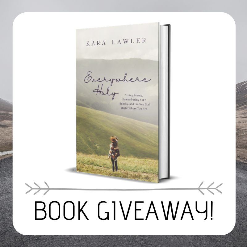 Kara is the author of Everywhere Holy. She is also a wife, mother, teacher, daughter, and friend, but sometimes she struggles with anxiety and depression, and feels like she has lost her path. In the writing of this book, she has sought to recognize the good in her life and signs that prove to her that God is watching out for her. For her, seeing cows in a field, dancing in the rain, collecting eggs from her chickens, and truly listening to her children are examples of being present. More than present though. These are moments, when recognized, that are holy, and they are everywhere when you look for them and recognize them.Giveaway Time!